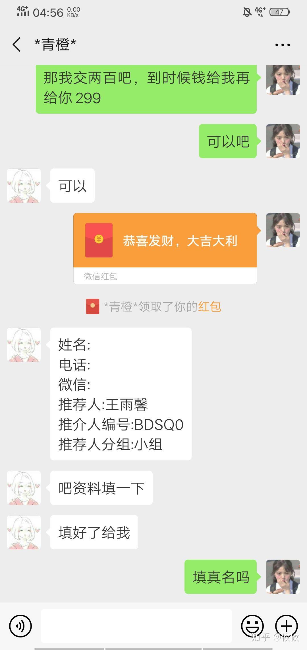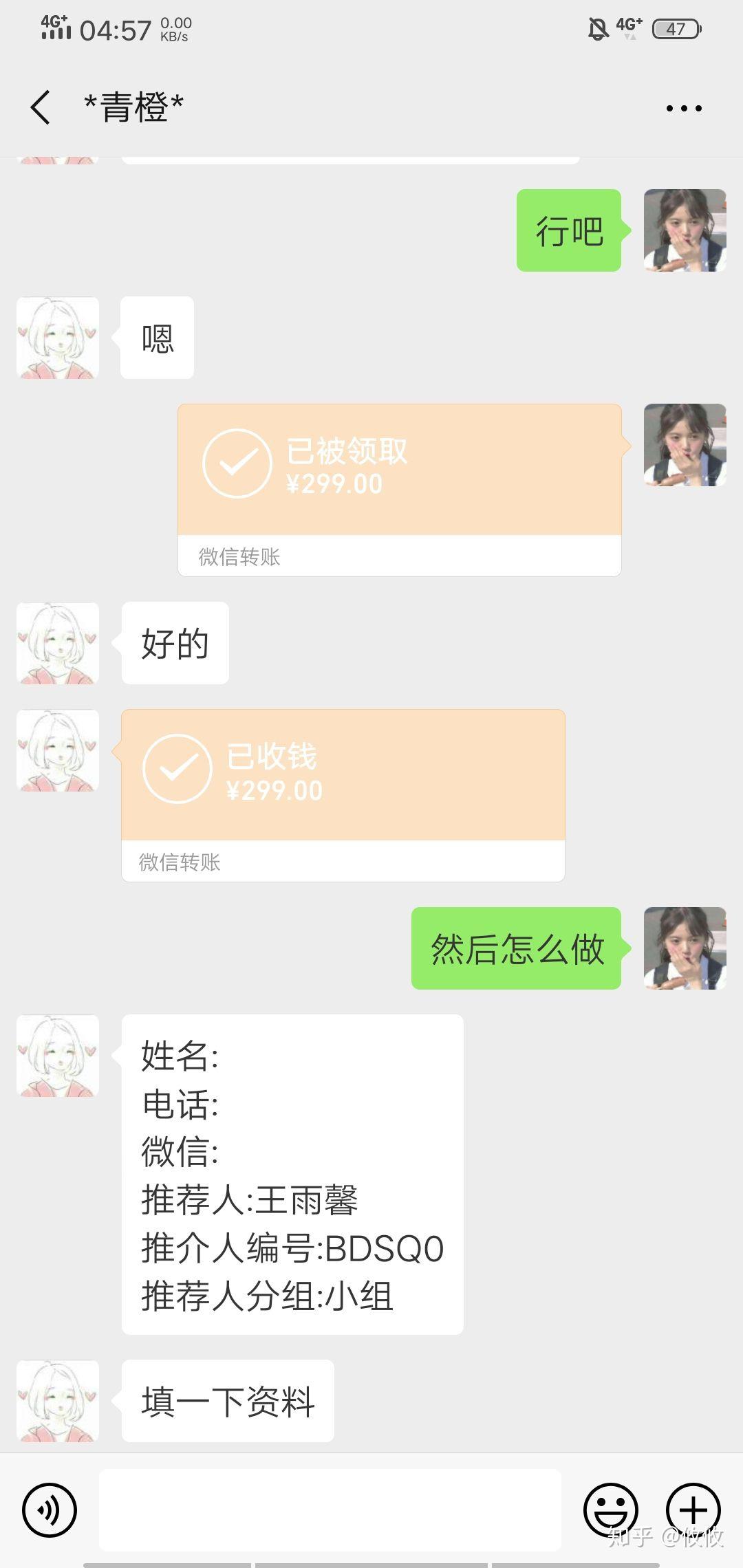 我还是一个初中生,五百对我来说很多,请大家以后注意这些人!他们专门找那些正在做兼职的和微商,不至有499的,其他团队还有699,599,799甚至更多这样的,全都不要信!他们就是抓住了大部分人的心理,所以我们同时也不能太贪!